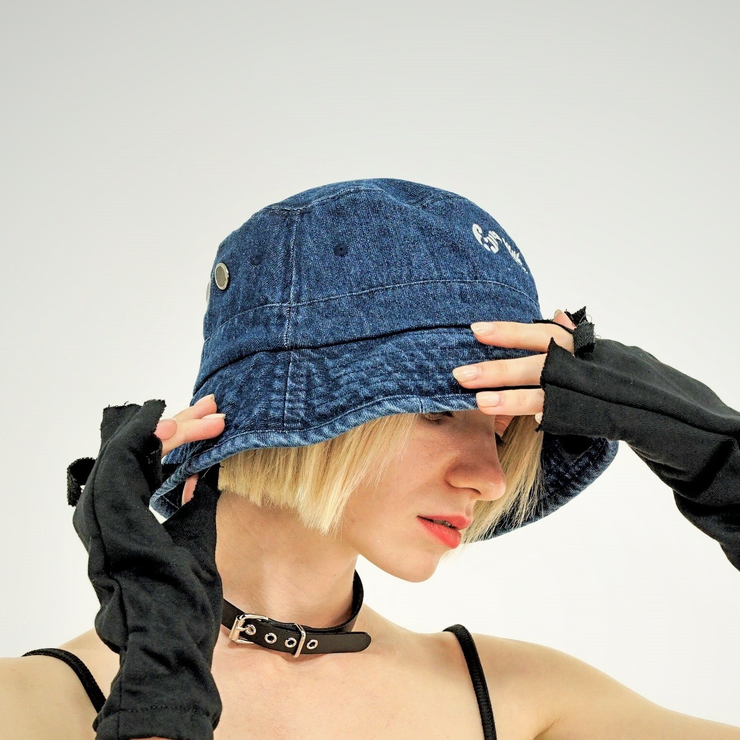 [Denim Black Mesh 2Hole Logo Bucket Hat]