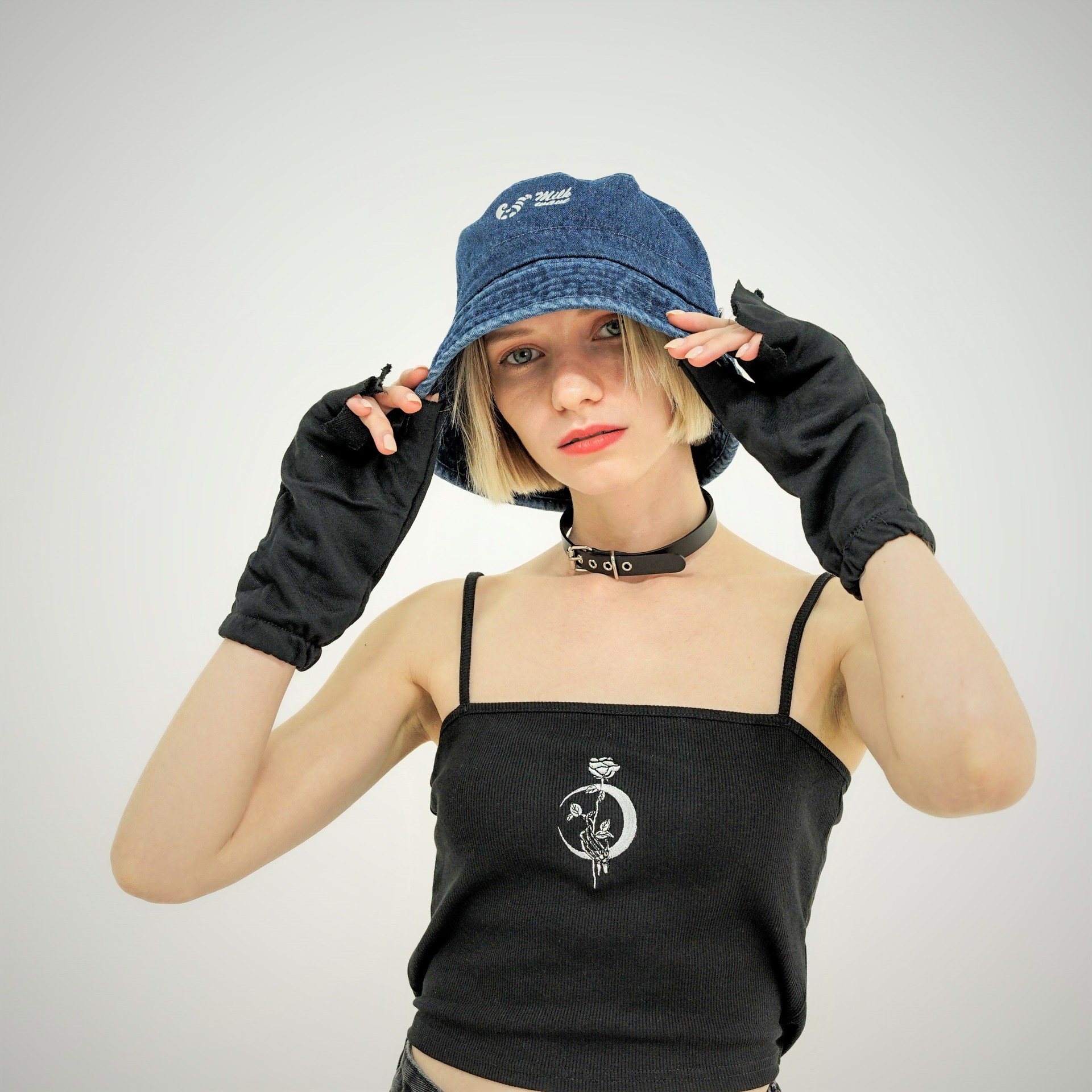 고급 바이오공정 후 부드러워진 데님으로 가장 대중적인 아웃핏의 버킷햇을 구성,