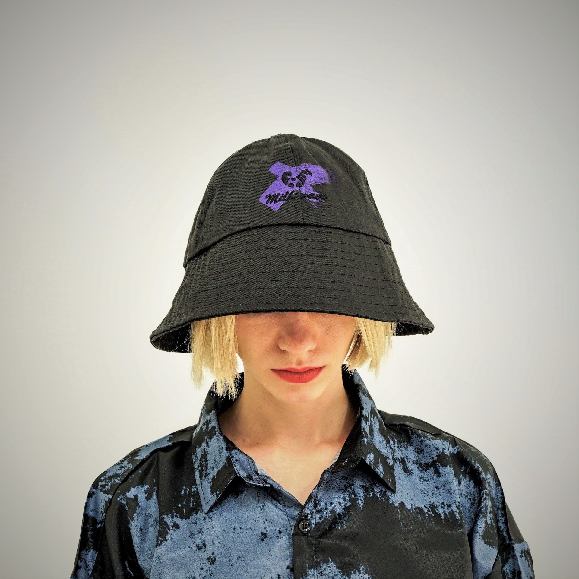 [X Custom Painting Logo Bucket Hat / Black x Purple]