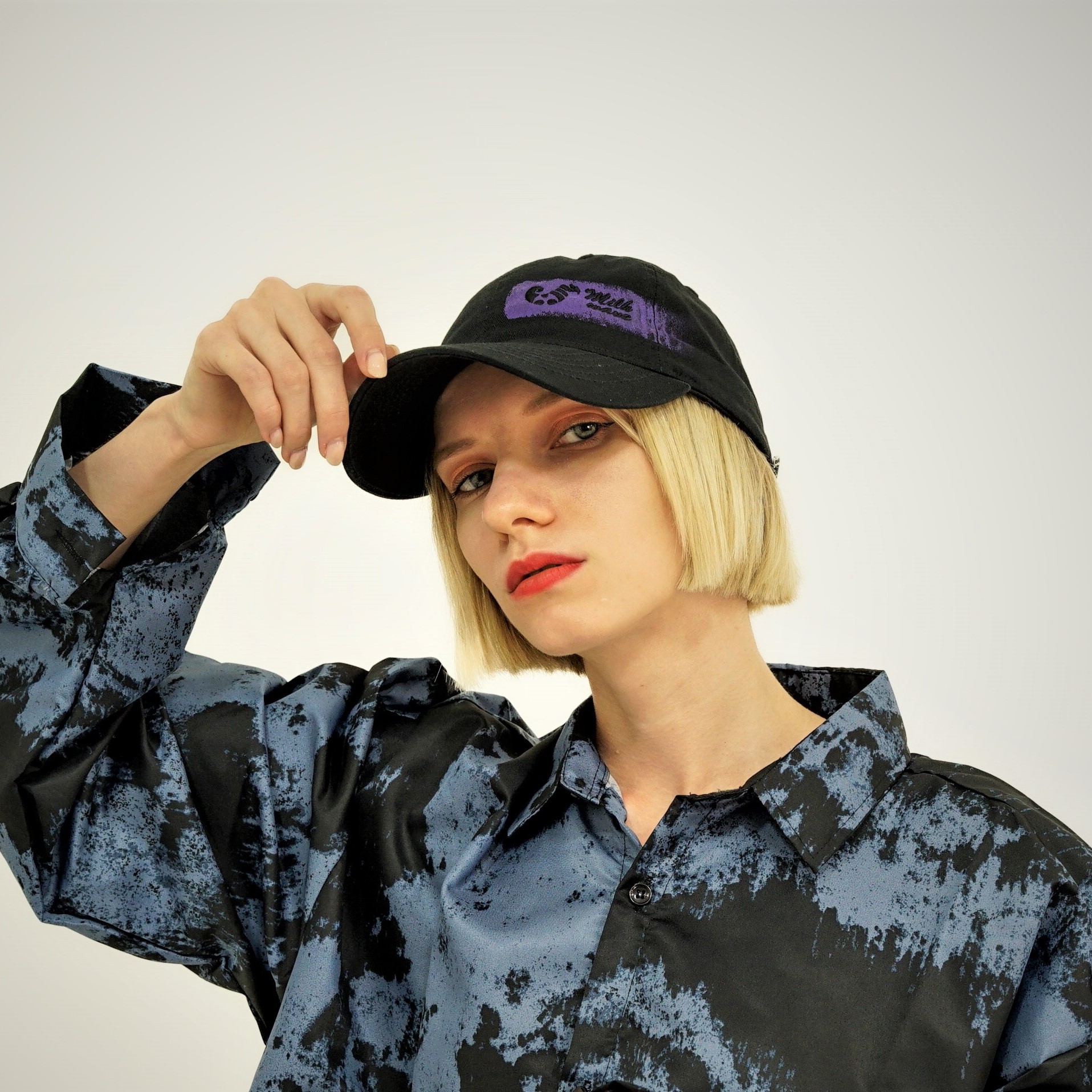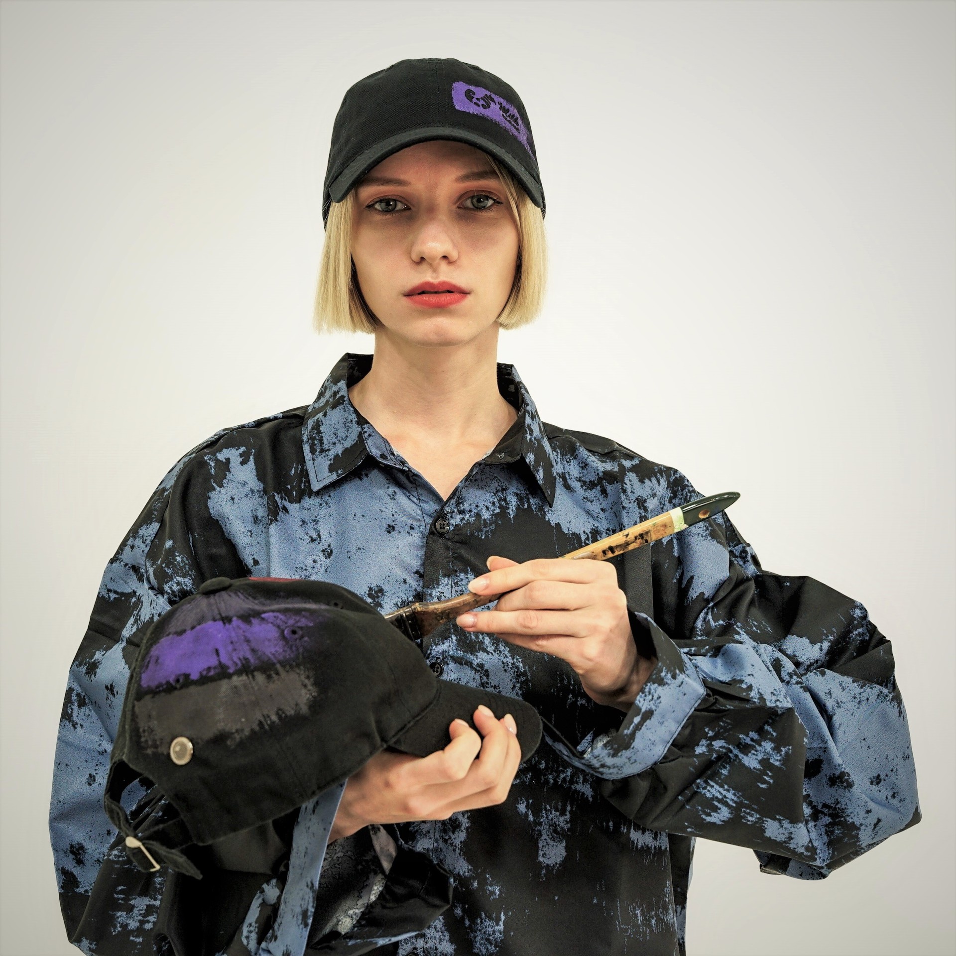 커스텀 페인팅 로고 볼캡 / 블랙 x 퍼플