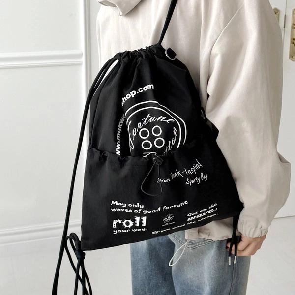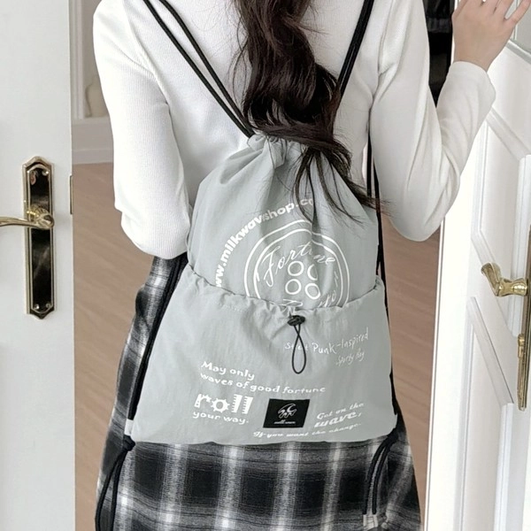 Layered Print Shirring String Backpack [Military Pink]NEW